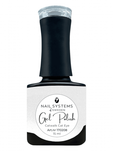 Catwalk Cat Eye er som en spotlight på neglen – et transparent, sølvfarvet cat eye-look, der reflekterer lys med magnetisk præcision. Det fungerer som en effektgel over stort set alt: læg det oven på sort for dramatisk dybde, på pastelfarver for gradueringer eller direkte på naturlige negle for et næsten futuristisk look.
